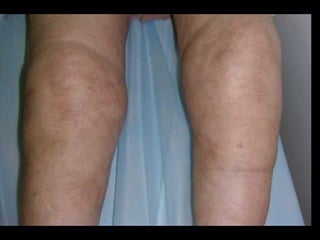 Este documento trata sobre la rodilla dolorosa y la gonartrosis. Explica las causas más comunes de dolor de rodilla en jóvenes y adultos mayores de 50 años, así como los síndromes anatómico-clínicos asociados. Describe los factores de riesgo, signos y síntomas, pruebas de diagnóstico y tratamiento de la gonartrosis.