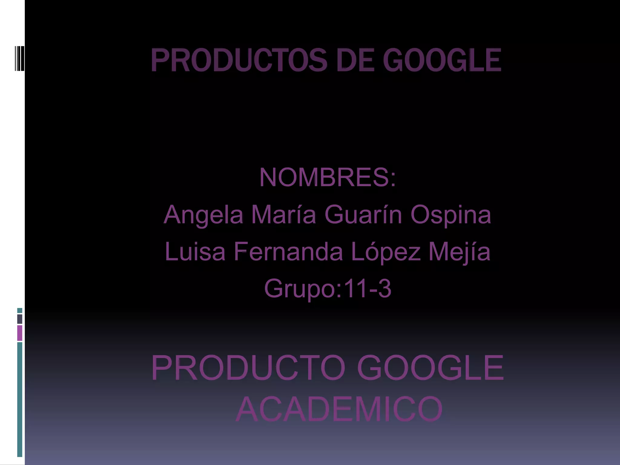 Google Académico es una herramienta de búsqueda especializada en textos académicos como tesis, trabajos y estudios completos con bibliografía, que permite realizar consultas sin necesidad de registro o descargas. Ofrece resultados relevantes a temas de investigación específicos provenientes de universidades y trabajos publicados.
