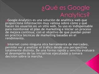 Google Analytics permite a las empresas conocer más sobre sus públicos objetivos, saber cómo se enteraron de la empresa, monitorear el comportamiento ante los mensajes de mercadeo y medir las conversiones obtenidas. Para usar Google Analytics, los usuarios deben crear una cuenta en la página web de Google Analytics e instalar el código de rastreo en sus páginas web. Luego de 24 horas podrán ver sus primeras estadísticas que incluyen visitantes, informes estándar y análisis de tráfico.