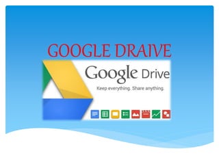 Google Drive es un servicio de almacenamiento en la nube lanzado en 2012 que reemplazó a Google Docs, ofreciendo 15 GB de espacio gratuito para almacenar archivos que pueden editarse en línea o mediante aplicaciones móviles. Con Drive, Google unificó el almacenamiento para que los 15 GB incluyeran también correos de Gmail y fotos de Google+ mayores a 2048 x 2048 píxeles.