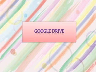 Google Drive es un servicio gratuito de almacenamiento en la nube que permite crear, editar y compartir documentos, presentaciones, hojas de cálculo, formularios, dibujos y archivos desde cualquier lugar. Incluye herramientas para crear y editar documentos de forma colaborativa y compartir archivos y carpetas con otros usuarios.