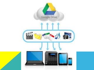 Google Drive es un servicio de almacenamiento en la nube lanzado en 2012 que ofrece 15GB gratis y permite crear, compartir y sincronizar archivos entre dispositivos. Se originó de la fusión de los servicios Writely y Google Spreadsheets. Ofrece características de edición y colaboración en tiempo real así como seguridad y acceso desde cualquier lugar a través de la nube.