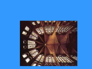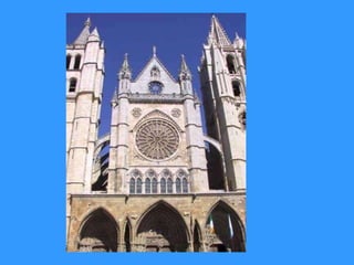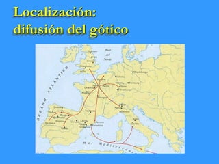 Este documento resume la evolución del estilo gótico en arquitectura desde el siglo XII hasta el XV. Explica los principales elementos arquitectónicos del estilo gótico como bóvedas de crucería, arbotantes, contrafuertes y más. También describe importantes catedrales góticas construidas en Francia, España, Gran Bretaña, Alemania e Italia durante este periodo.