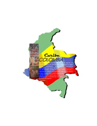 La región del Caribe colombiana se caracteriza por una cocina variada que utiliza ingredientes locales como carnes, pescados, mariscos, plátano, coco y yuca. La región de Antioquia se distingue por el uso frecuente del maíz y los frijoles. La cocina de Cundinamarca es diversa y se basa en tradiciones que aún perduran. La cocina del Pacífico se caracteriza por su gran diversidad de ingredientes, técnicas y platos que reflejan la biodiversidad de la región.