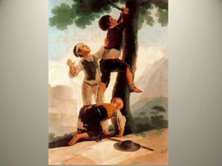 Goya fue un pintor de la corte española en el siglo XVIII que retrató al Rey Carlos IV y la Reina Ma Luisa de Parma. También es conocido por sus pinturas costumbristas que muestran escenas de la vida cotidiana como "El quitasol", "El baile", y "La vendimia", y por sus famosas pinturas eróticas "La maja vestida" y "La maja desnuda". Más tarde, Goya documentó los horrores de la guerra y las luchas políticas de su época a través de una serie de