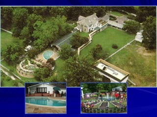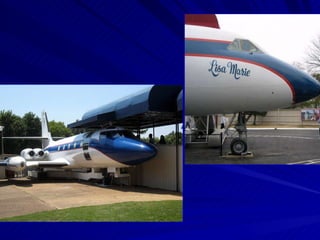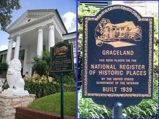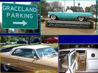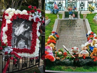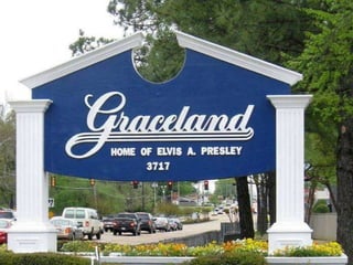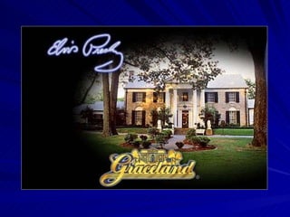 Este documento describe las habitaciones y características de Graceland, la casa de Elvis Presley en Memphis, Tennessee, incluyendo la sala de estar, sala de música, comedor, sala de trofeos, trajes de Elvis y jardines. También menciona la muerte de Elvis a la edad de 42 años y el funeral en Graceland.