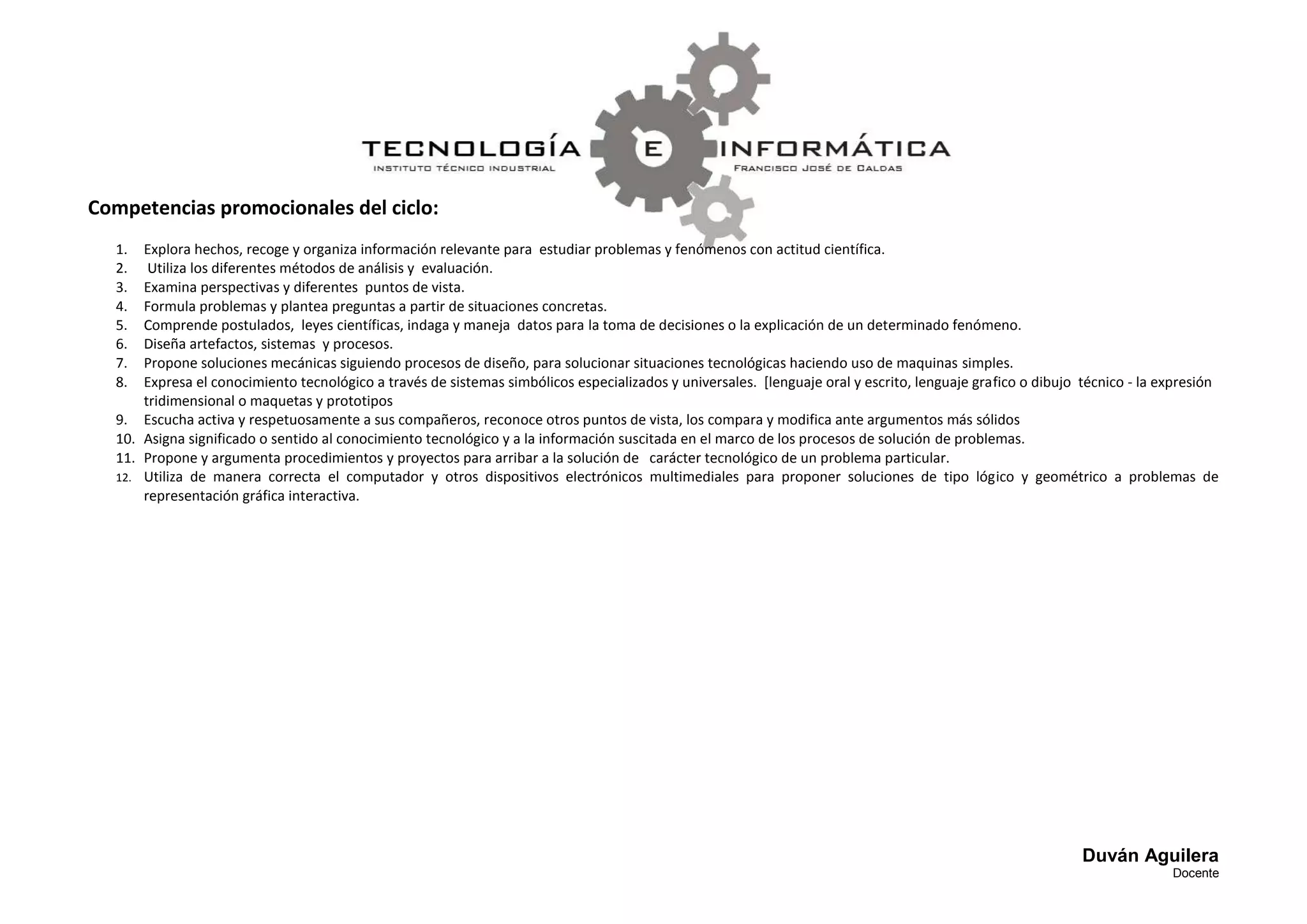 Este documento presenta el plan de estudios de un curso de Dibujo Asistido por Computador que incluye contenidos sobre líneas, áreas, superficies, sólidos simples y complejos utilizando operaciones booleanas, revolución y ensamblaje. El curso también incluye la aplicación de colores, texturas y materiales para crear presentaciones fotorrealistas.