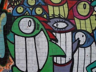 El grafiti involucra pintar textos abstractos y creativos en paredes públicas de manera libre e ilimitada para expresión y divulgación. Es parte de un movimiento urbano, revolucionario y rebelde. Se realiza de forma veloz y espontánea, en algunos casos de manera anónima. Rotuladores y aerosoles son los medios más usados. Artistas emblemáticos incluyen a Jean-Michel Basquiat y Keith Haring.