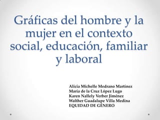 El documento explora las representaciones del hombre y la mujer en la sociedad, educación, familia y el trabajo. Analiza cómo se ven a los hombres y mujeres en estos contextos sociales y las dinámicas de género presentes.