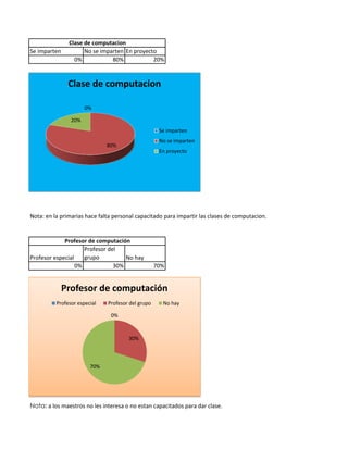 El 90% de las escuelas rurales visitadas no tenían acceso a Internet ni sala de medios. Aunque poco a poco las escuelas se están actualizando, todavía el 80% no imparte clases de computación debido a la falta de profesores capacitados. La mayoría del equipamiento tecnológico como impresoras y cañones de sonido se encuentra en las aulas, aunque el mantenimiento de los equipos depende principalmente de profesores o personal externo debido a la falta de técnicos.