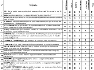 Este documento presenta 12 preguntas sobre temas relacionados con la tecnología, la innovación y la sostenibilidad en Marinilla, Colombia. Cada pregunta evalúa tres factores clave: la factibilidad técnica, el costo y el tiempo requerido para implementar posibles soluciones. El documento busca identificar oportunidades para mejorar la calidad de vida en la comunidad de una manera económica y sostenible a largo plazo.
