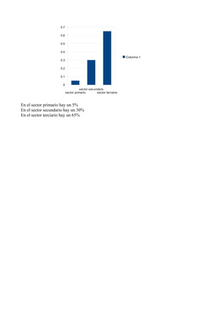 Tres gráficos muestran datos estadísticos sobre alumnos con acceso a internet, población por género en Quesada, y distribución de los sectores económicos en España. El primer gráfico indica que 20 alumnos tienen acceso a internet en casa mientras que 4 no lo tienen. El segundo gráfico muestra que hay 2945 hombres y 2846 mujeres en Quesada. El tercer gráfico demuestra que el sector primario representa un 5%, el sector secundario un 30%, y el sector terciario un 65% de la economía española