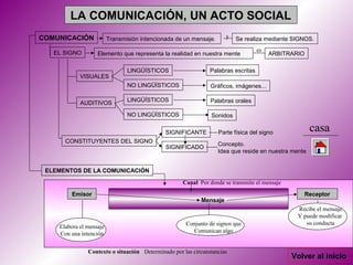 El documento presenta una introducción a la gramática. Explica que la gramática estudia la organización de la lengua y sus niveles de estudio, incluyendo el fonológico, morfológico, sintáctico y textual. También describe los elementos de la comunicación como el emisor, receptor, mensaje, canal y contexto.