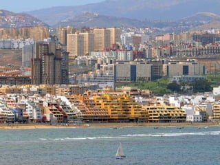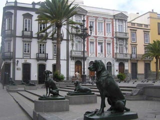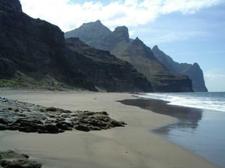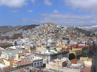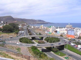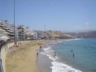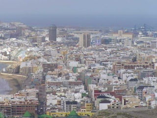 El documento lista varias localidades y atracciones turísticas de la isla de Gran Canaria. Menciona lugares como el Barranco de Guiniguada, el Parque Siete Palmas, la Playa de la Laja, Vegueta, Cumbres de Gran Canaria, Roque Nublo, Playa de Amadores, Playa del Inglés, Puerto de Mogán, Santa Lucía de Tirajana, Telde, Teror, Valleseco, Bañaderos, Vega de San Mateo, San Felipe, El Dedo de Dios en Agaete, Moya,
