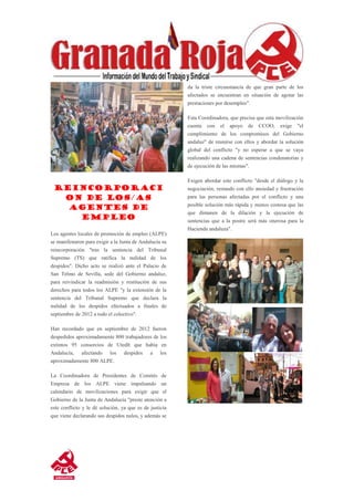 El documento resume los resultados de las elecciones europeas en España. Izquierda Unida celebra haber triplicado su representación en el Parlamento Europeo con 6 escaños, mientras que el PSOE y el PP sufrieron grandes pérdidas. Cayo Lara exige la dimisión de Rajoy y la convocatoria de elecciones generales. En Andalucía e Madrid, tanto el PSOE como el PP perdieron muchos votos. En Granada, el PSOE obtuvo la mayor cantidad de votos pero Izquierda Unida continúa ganando apoyo.