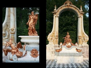 Jeremiah Clarke fue un compositor y organista inglés del siglo XVII que escribió música sacra, himnos y piezas para teatro. Una de sus obras más famosas es la Marcha del Príncipe de Dinamarca. La Granja de San Ildefonso en España fue construida originalmente como una ermita y granja para los monjes jerónimos, pero luego el rey Felipe V la compró y construyó un palacio y jardines barrocos siguiendo modelos franceses como Versalles, con parterres, fuentes y estatuas que representan