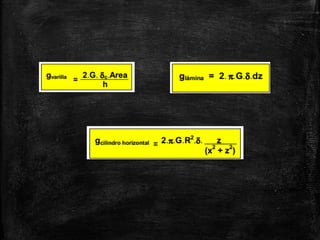 1. La gravedad es la atracción gravitacional que ejerce la masa de la Tierra sobre los cuerpos en su superficie. 2. Isaac Newton estableció las tres leyes del movimiento y determinó que la fuerza gravitatoria disminuye con el cuadrado de la distancia. 3. En 1798, Henry Cavendish midió experimentalmente el valor de la constante de gravitación universal G usando una balanza de torsión.