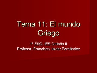 El documento resume la cronología y algunos aspectos clave de la civilización griega antigua. Describe las civilizaciones minoica y micénica en los periodos comprendidos entre 2600-1600 a.C. y 1600-1200 a.C. respectivamente. Explica los llamados "Siglos Oscuros" entre 1200-800 a.C., seguidos de la Época Arcaica. Aborda conceptos como la polis, la democracia ateniense y la hegemonía de Esparta. Finalmente, analiza el esplendor de Atenas en el siglo