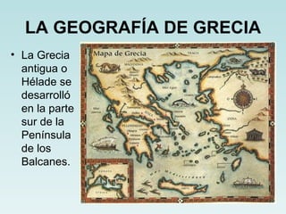 Grecia fue la cuna de la civilización occidental. Estaba compuesta por ciudades-estado independientes llamadas polis, como Atenas y Esparta. Los griegos desarrollaron importantes avances en filosofía, matemáticas, medicina, arquitectura, teatro y deportes. Su legado incluye la democracia, las Olimpiadas y conceptos fundamentales que aún utilizamos.