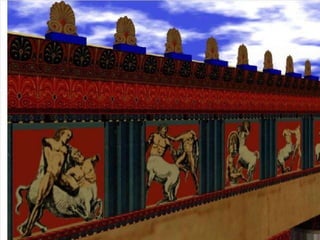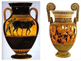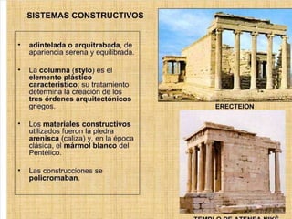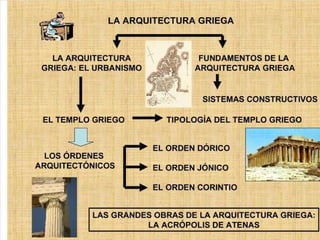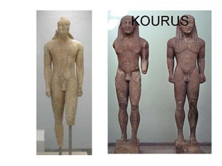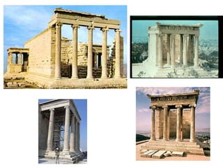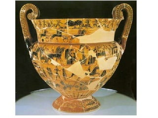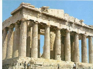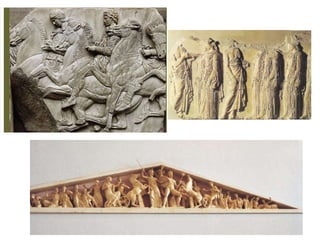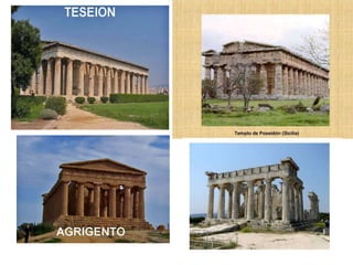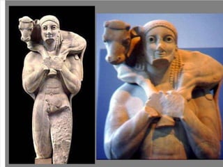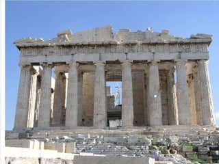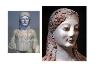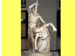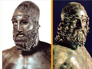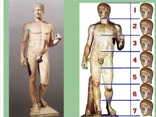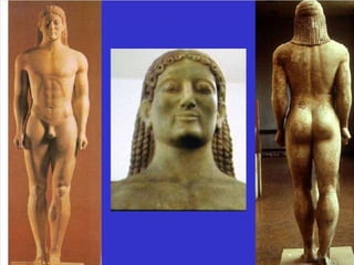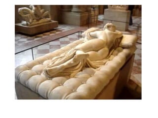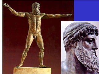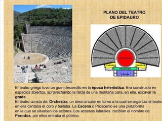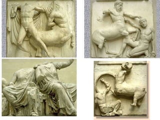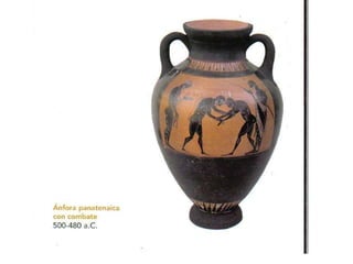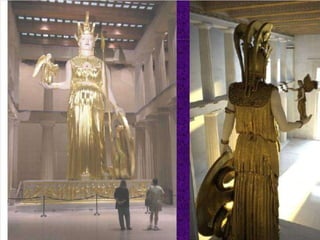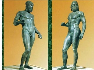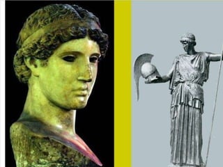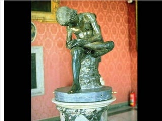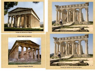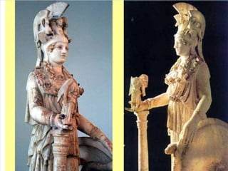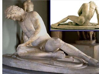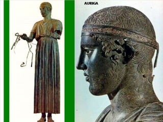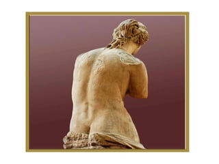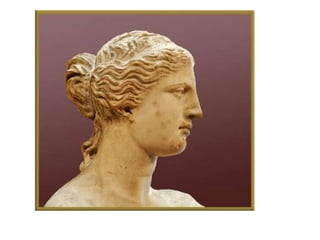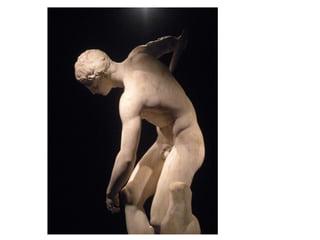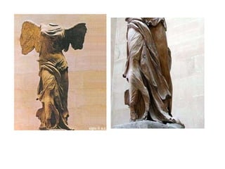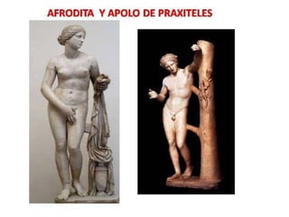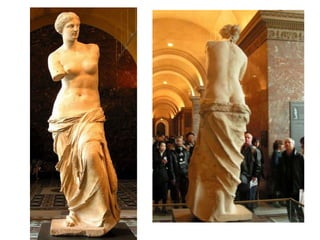 El documento lista varias esculturas griegas antiguas, incluyendo el Discóbolo de Miron, la Venus de Milo, la Victoria de Samotracia y Hermafrodita, y proporciona breves detalles sobre cuándo y dónde fueron descubiertas.