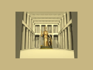 La arquitectura griega se desarrolló desde el primer milenio a.C. hasta el siglo II a.C., sentando las bases de la arquitectura occidental. Se caracterizó por ser adintelada y monumental pero no colosal, con plantas equilibradas y proporcionadas. Los materiales principales fueron la piedra y el mármol, con elementos decorativos escultóricos. Los edificios públicos más importantes fueron el ágora y el teatro.
