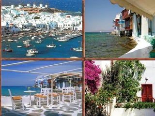 La isla griega de Mykonos es conocida por la belleza de su capital y sus numerosas playas de gran calidad. Su capital, Mykonos pueblo, se destaca por sus callejuelas estrechas y laberínticas llenas de casas blancas y flores, así como por sus famosos molinos de viento y el pelícano Petros que vive libremente en la ciudad. Barcos salen continuamente del pintoresco puerto hacia otras islas cercanas como Délos.