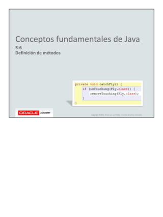Este documento proporciona instrucciones sobre el uso de métodos en Greenfoot. Explica que los métodos permiten expandir la funcionalidad de los objetos y que aunque no mejoran el rendimiento, facilitan tener un código más legible y ágil. Recomienda nombrar los métodos de forma significativa y usar mayúsculas para diferenciar palabras.