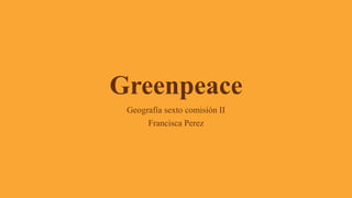 Greenpeace comenzó en 1971 como un pequeño grupo de activistas antinucleares en Canadá. Desde entonces, se ha convertido en una gran organización internacional que lucha por causas ambientales a través de acciones directas y campañas de concientización. Aunque ha tenido éxitos como frenar pruebas nucleares y desmontes, también recibe críticas sobre su financiamiento y oposición a los transgénicos. En general, Greenpeace ha generado un gran impacto elevando problemas ambientales a la esfera pública.