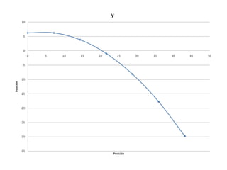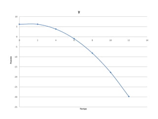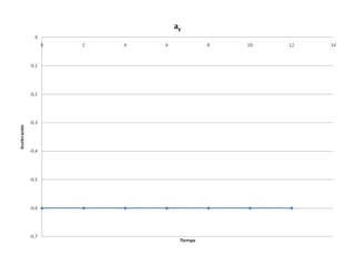Este documento describe gráficas de posición, velocidad y aceleración contra el tiempo para un movimiento semiparabólico con un ángulo inicial de 0 grados. Estas gráficas representan la trayectoria de un chorro de agua y la reflexión de la luz.