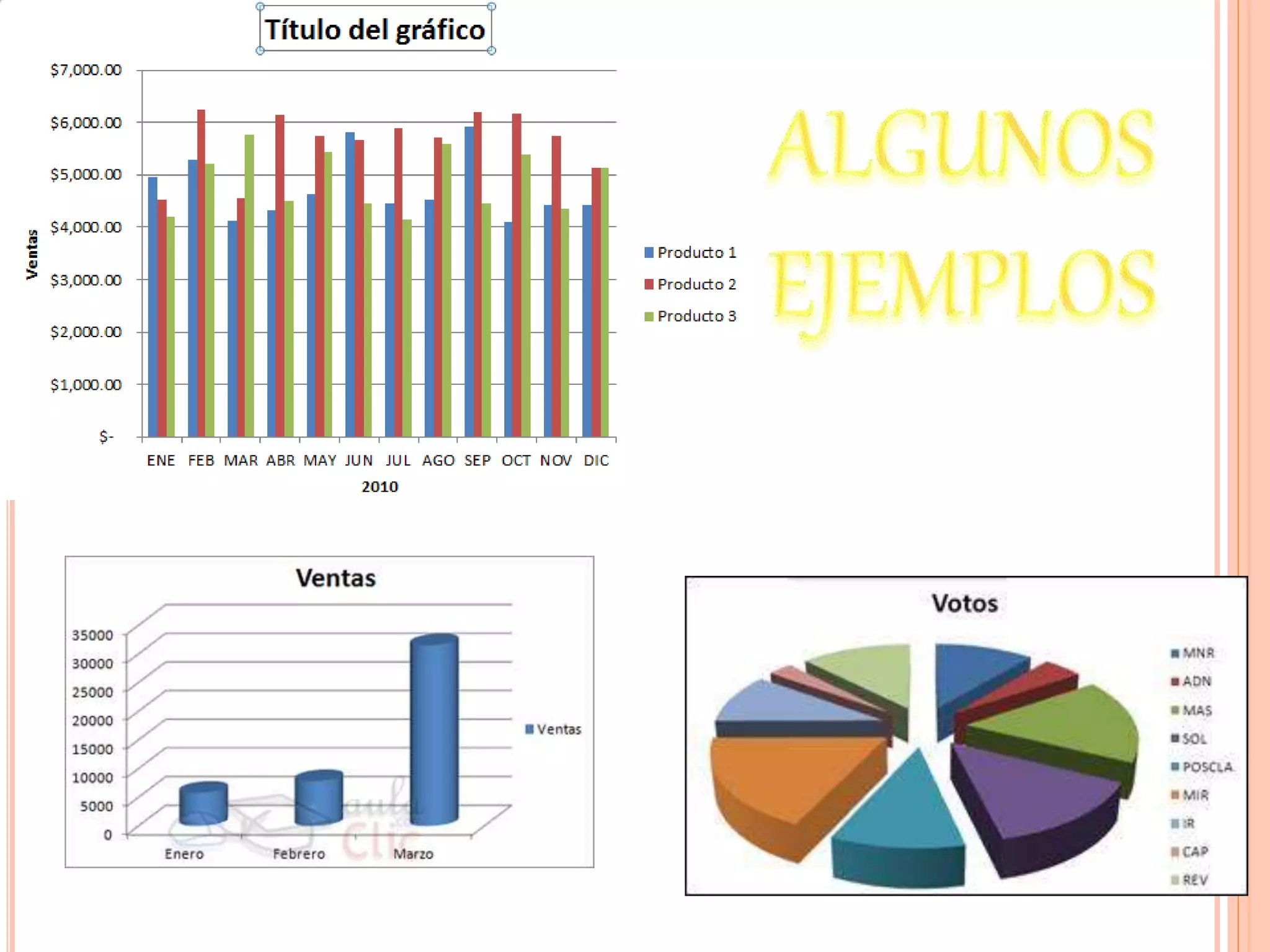 Este documento describe los diferentes tipos de gráficos en Excel, incluyendo gráficos de barras, líneas y circulares. Explica cómo crear gráficos a partir de datos en una hoja de cálculo y cómo personalizarlos agregando títulos, formato a los ejes y etiquetas de datos.