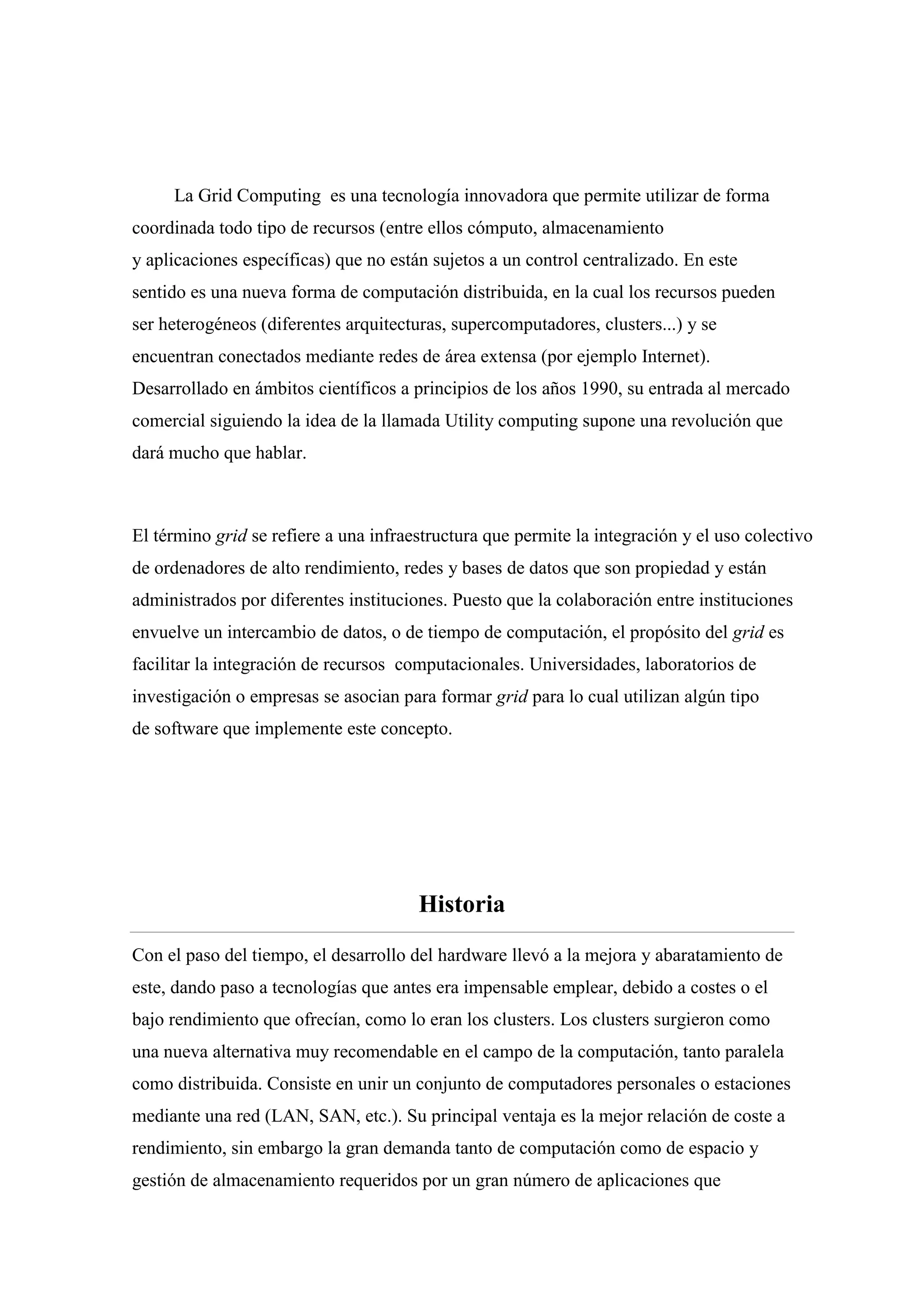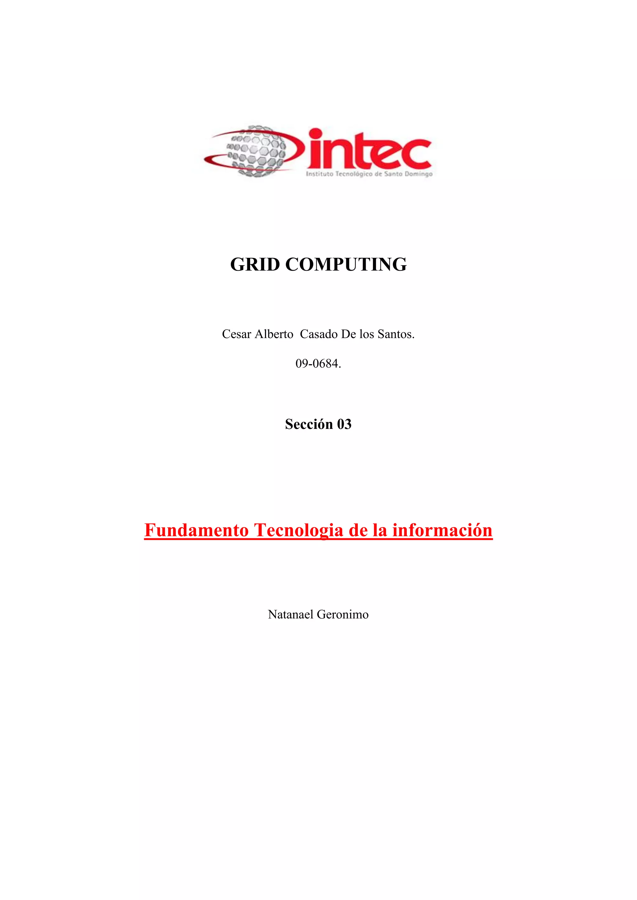 La Grid Computing permite utilizar de forma coordinada recursos como cómputo, almacenamiento y aplicaciones que no están sujetos a un control centralizado, lo que constituye una nueva forma de computación distribuida. Los recursos pueden ser heterogéneos y están conectados a través de redes de área extensa. La computación grid ofrece ventajas como potencia ilimitada y flexibilidad al integrar sistemas heterogéneos de forma transparente. Existen proyectos como SETI@home que usan grids, así como soluciones comerciales de empresas como Sun Microsystems,