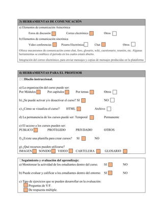 Moodle es una plataforma educativa de código abierto que ofrece diversas herramientas para docentes y estudiantes. Los docentes pueden crear y administrar cursos utilizando módulos, temas y otras opciones de organización. Incluye herramientas de comunicación como foros y chats, así como opciones para monitorear el progreso de los estudiantes y calificar exámenes y tareas. Los estudiantes pueden acceder a contenidos, realizar actividades individuales y grupales, y comunicarse con compañeros y profesores.