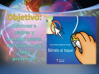 Este taller de orientación se dirige a niños y padres sobre el uso seguro y responsable de Internet. Se recomienda a los niños no revelar información personal a desconocidos ni enviarles fotos o videos. A los padres se les aconseja supervisar la actividad en línea de sus hijos, instalar software de seguridad y hablar con ellos sobre temas de sexualidad. El objetivo es prevenir el acoso cibernético o "grooming".