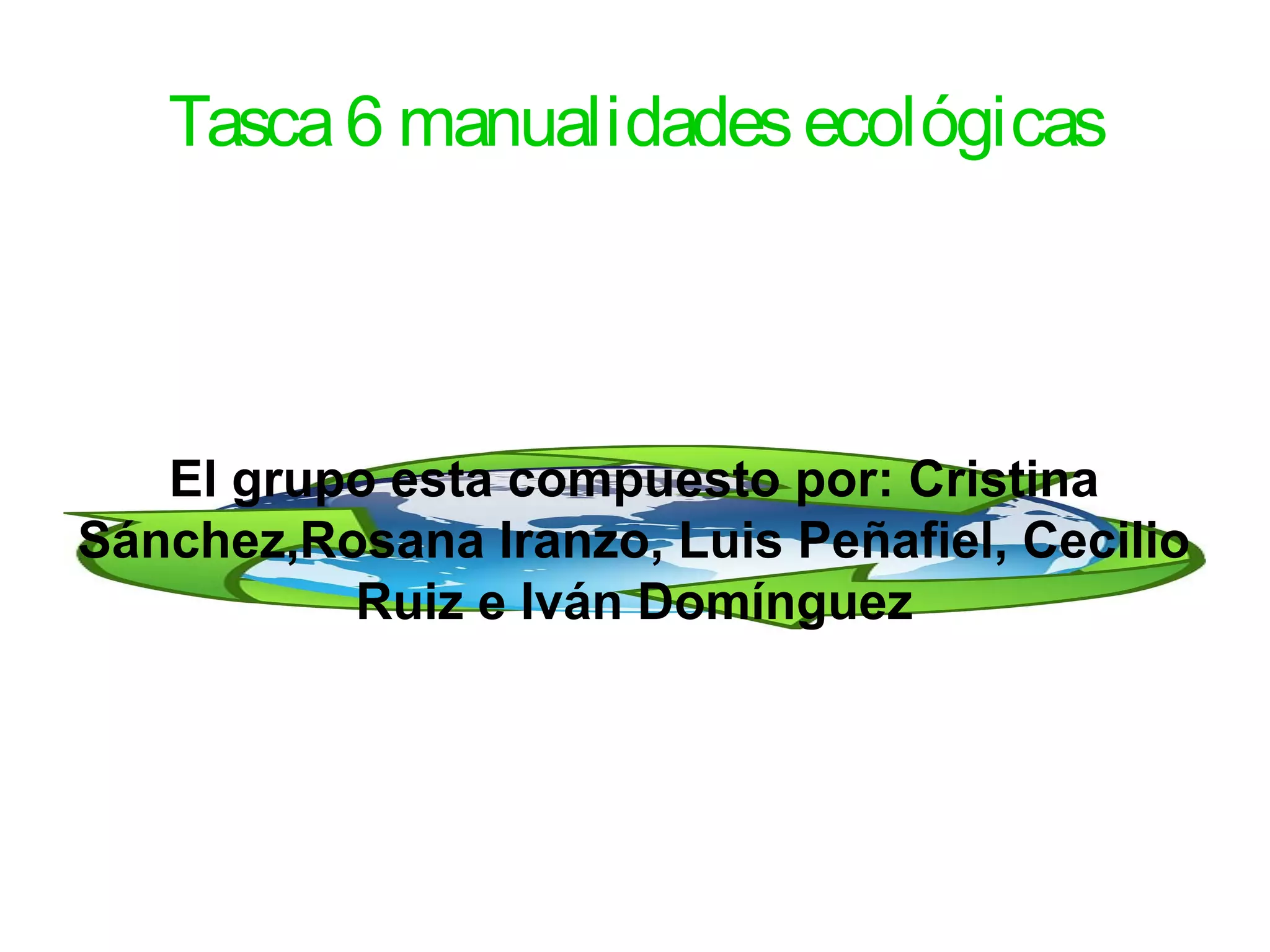 El grupo Tasca6 manualidadesecológicas está compuesto por 5 personas que crean artículos útiles y decorativos a partir de materiales reciclados como bricks de leche, papel y cajas de jabón. Enseñan cómo hacer un monedero sencillo usando un brick de leche cortado y cosido. Además, tejen cuadrados verdes para una asociación sobre miastenia gravis y donan el dinero de las ventas a una ONG contra la contaminación.