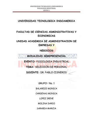 Este documento contiene información sobre el proceso de selección de personal, incluyendo la requisición de personal, el perfil ocupacional y la ficha profesiográfica. Explica los pasos del proceso de selección como la publicación de una vacante, la recopilación de candidatos, la evaluación de sus calificaciones y la selección del candidato más adecuado. También incluye ejemplos de una ficha de requisición de personal y una ficha profesiográfica que se utilizan para evaluar a los candidatos.