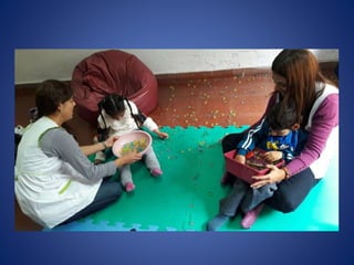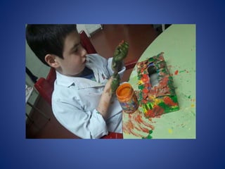 El documento resume las actividades diarias de un grupo de estudiantes en la escuela primaria, incluyendo momentos compartidos con maestros y personal, trabajos manuales como pintar y manipular masa, recreos en el patio y SUM, participación en actos escolares, tiempo en la sala multisensorial y taller de comunicación, comida y cuidado personal, y descanso en casa.