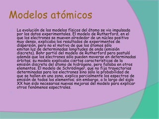 Este documento presenta la información de 4 integrantes de un grupo de trabajo: Alejandra Pincay, Diana Moncada, Andrés Salazar y Anthony Romero. Además, incluye varios párrafos sobre la evolución de los modelos atómicos, incluyendo los modelos de Rutherford, Bohr y Schrödinger, así como sobre la estructura atómica, isótopos y otros temas relacionados con la física atómica.