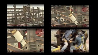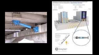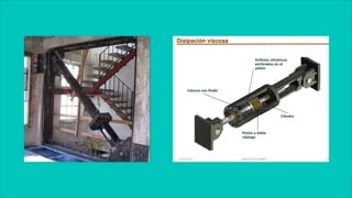 Este documento describe los disipadores de fluido viscoso como sistemas avanzados para la protección sísmica de estructuras. Estos dispositivos funcionan disipando la energía sísmica a través del controlado flujo de un fluido altamente viscoso dentro de cilindros. Los disipadores de fluido viscoso reducen los daños estructurales y no estructurales durante los sismos y mejoran el comportamiento general de los edificios. El documento también cubre aspectos como la instalación, ventajas, desventajas, configuraciones y aplicaciones n
