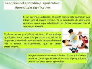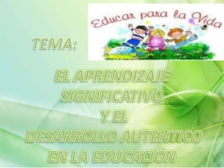 El documento resume las presentaciones de varias estudiantes sobre el desempeño auténtico y el aprendizaje significativo. Se discutieron conceptos como la integración del contenido escolar con las actividades cotidianas, según Dewey. También se mencionó que el aprendizaje debe darse en contextos significativos para el estudiante, como decía Piaget. Finalmente, se enumeraron elementos básicos del aprendizaje significativo y condiciones necesarias para que ocurra.