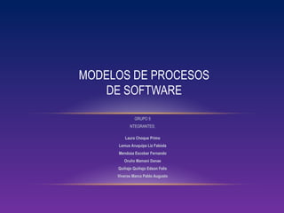 Este documento describe varios modelos de procesos de software, incluyendo modelos iterativos como el modelo en cascada y orientado a prototipos, modelos evolutivos como el incremental y en espiral, y modelos ágiles como Scrum y Extreme Programming. Explica las características clave, ventajas y desventajas de cada modelo.