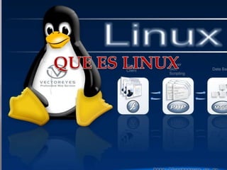 El documento habla sobre Linux, mencionando sus funciones principales como sistema multitarea, multiusuario y control de dispositivos. Luego menciona versiones de Ubuntu como Ubuntu, Kubuntu y Xubuntu, así como distribuciones como Ubuntu, Red Hat Enterprise, Fedora, Debian y Gentoo. Finalmente, resume los pasos para instalar Ubuntu haciendo doble clic en el icono de instalación.