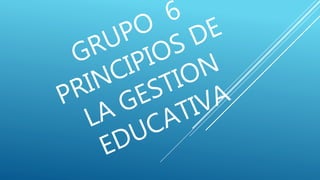 Este documento discute los principios y modelos de gestión educativa. Algunos principios clave incluyen una jerarquía y autoridad definidas, determinar quién toma las decisiones y comunicación permanente. Los modelos de organización educativa se enfocan en los objetivos y pueden ser formales, sistemáticos, burocráticos, jerárquicos o democráticos. Una buena gestión educativa requiere principios que promuevan la comunicación y organización para alcanzar objetivos compartidos que beneficien a la comunidad educativa.