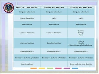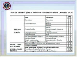 El documento describe las propuestas curriculares para los niveles de educación obligatoria en España. Propone organizar el currículo por áreas de conocimiento estructuradas en subniveles, con aprendizajes agrupados en bloques curriculares que abarcan desde primero de Educación General Básica hasta el último año de Bachillerato General Unificado. El objetivo es acercar la propuesta curricular a los intereses y ritmos de aprendizaje de los estudiantes.