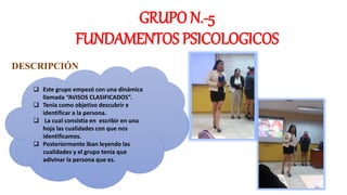 2. En el primer grupo, varias estudiantes expusieron sobre teorías psicológicas como la teoría de campo y modelos como el de Skinner.
