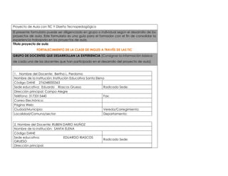El proyecto de aula buscó fortalecer la enseñanza del inglés en grado tercero a través del uso de las TIC. Los docentes diseñaron actividades usando programas como JCLIC y Hot Potatoes para desarrollar competencias lingüísticas. Los estudiantes mostraron mayor interés y los docentes observaron mejoras en el aprendizaje y rendimiento académico al implementar las herramientas tecnológicas.