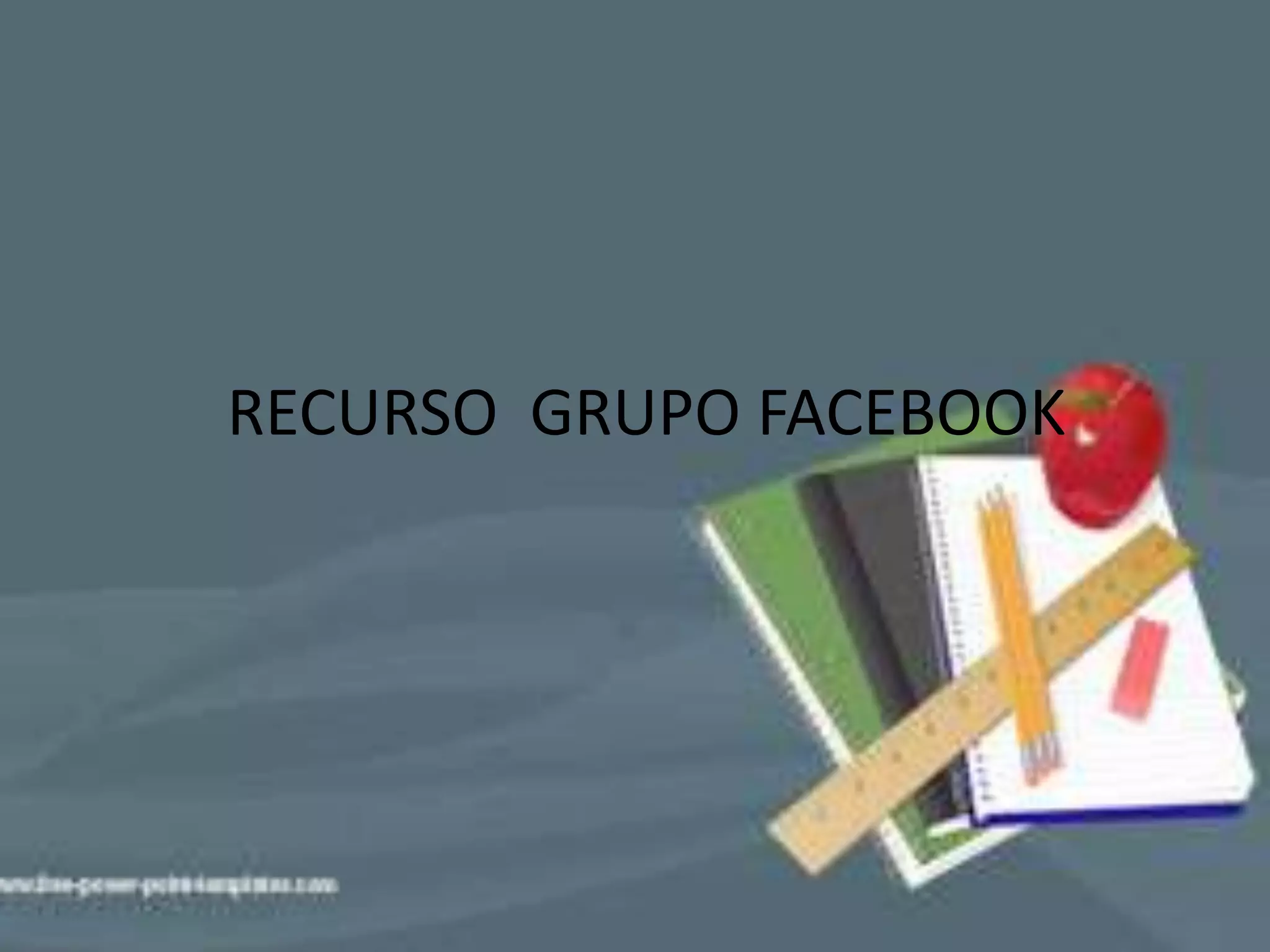 El documento describe un recurso de grupo de Facebook, explicando que permite a los miembros comunicarse entre sí con un objetivo común, como compartir información o responder encuestas. Explica que los grupos requieren interacción directa entre los miembros, conciencia de pertenencia al grupo, un interés compartido, y una estructura organizativa. Ofrece ventajas como comunicación fácil, acceso fácil, y transparencia para localizar miembros del grupo.