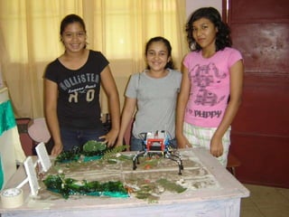 El documento describe un proyecto de un campamento de robótica animal. El animal en cuestión es una araña y vive en el bosque, alimentándose principalmente de insectos como mariposas y hormigas. El proyecto fue construido utilizando varias piezas como engranajes, ejes, vigas, motores y ladrillos programables.