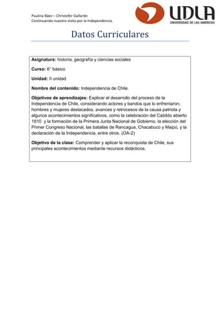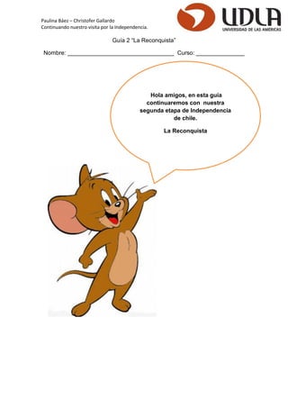 Este documento presenta información sobre la segunda etapa de la independencia de Chile conocida como la Reconquista. Explica que este período comenzó con la batalla de Rancagua en 1814 y terminó con la victoria patriota en la batalla de Chacabuco en 1817, cuando se restauraron las instituciones coloniales. Muchos patriotas sufrieron el exilio, pero otros como San Martín y O'Higgins organizaron un ejército libertador en Mendoza que finalmente logró la independencia.