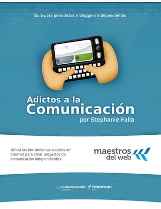 El documento 'Adictos a la Comunicación' es una guía para periodistas y bloggers independientes que aborda la transición al periodismo digital y las herramientas necesarias para la creación de contenido en línea. Se destacan temas como la producción de medios digitales, el uso de redes sociales, y las habilidades requeridas para comunicadores en la era digital. Además, incluye recursos y consejos para mejorar la práctica del periodismo y adaptarse a las nuevas dinámicas de comunicación.