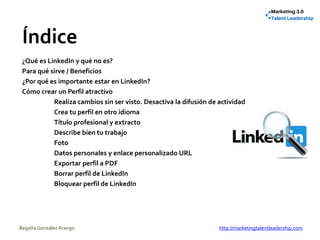 La guía de Begoña González Arango proporciona información esencial sobre cómo utilizar LinkedIn efectivamente para construir una red profesional, crear un perfil atractivo y maximizar su presencia en la plataforma. Destaca la importancia de LinkedIn para establecer contactos, buscar empleo y gestionar la marca personal, así como los errores comunes que se deben evitar al usarla. También ofrece consejos sobre cómo optimizar el perfil, incluyendo la redacción del titular, extracto y detalles de la experiencia laboral.